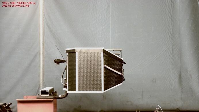 It’s worth noting that the same box was used in Tests 1 and 2, and in Test 3, the IXTAbox sustained some damage. Some rivets at the bottom of the IXTAbox came loose. Minor lid deformation. No parts or load were ejected.