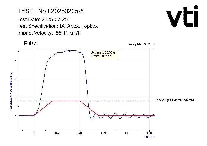 To validate IXTAbox and answer the above questions, six crash tests were conducted in total: five on IXTAbox and one reference test on a roof box. The crash test on IXTAbox was performed on February 25, 2025.