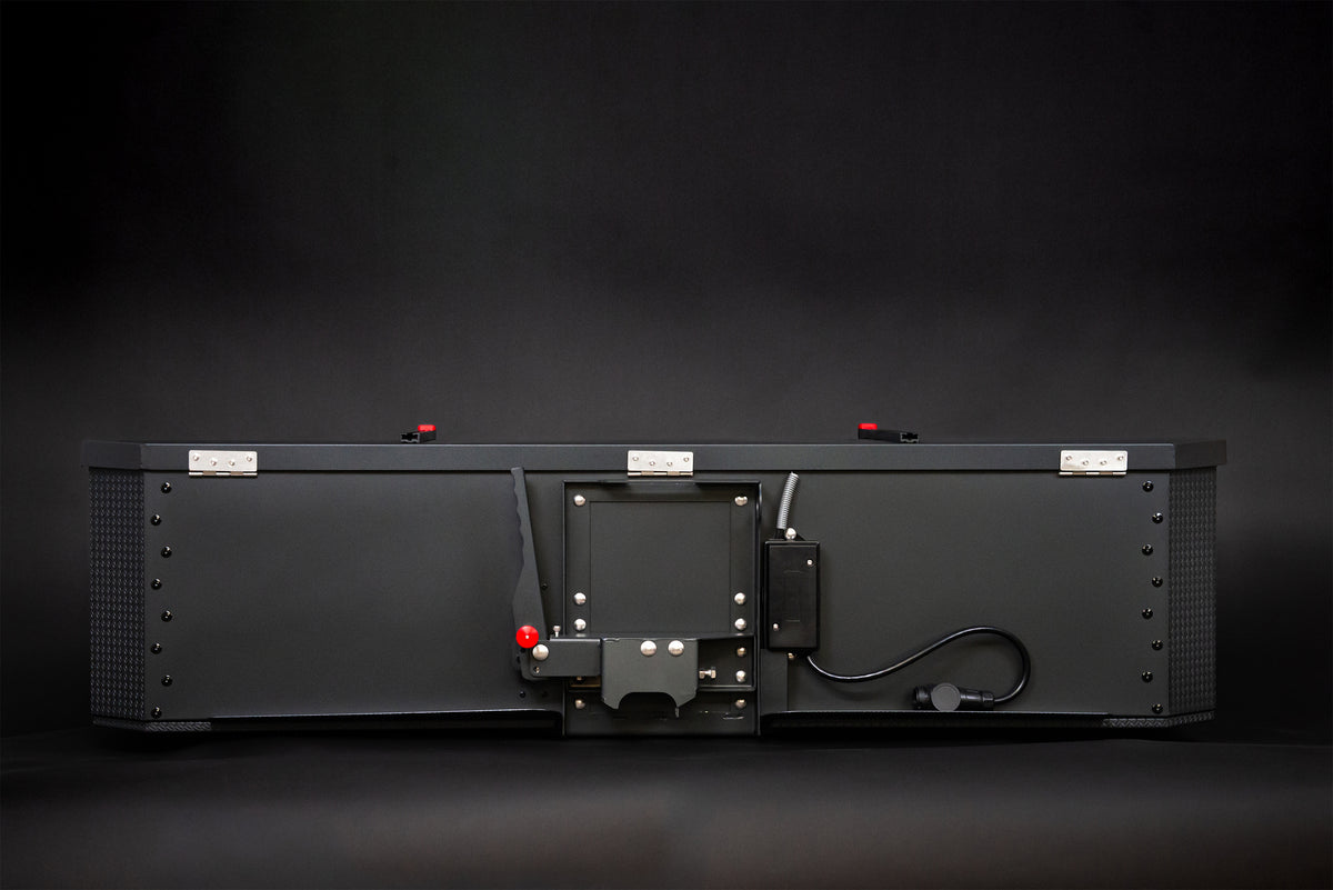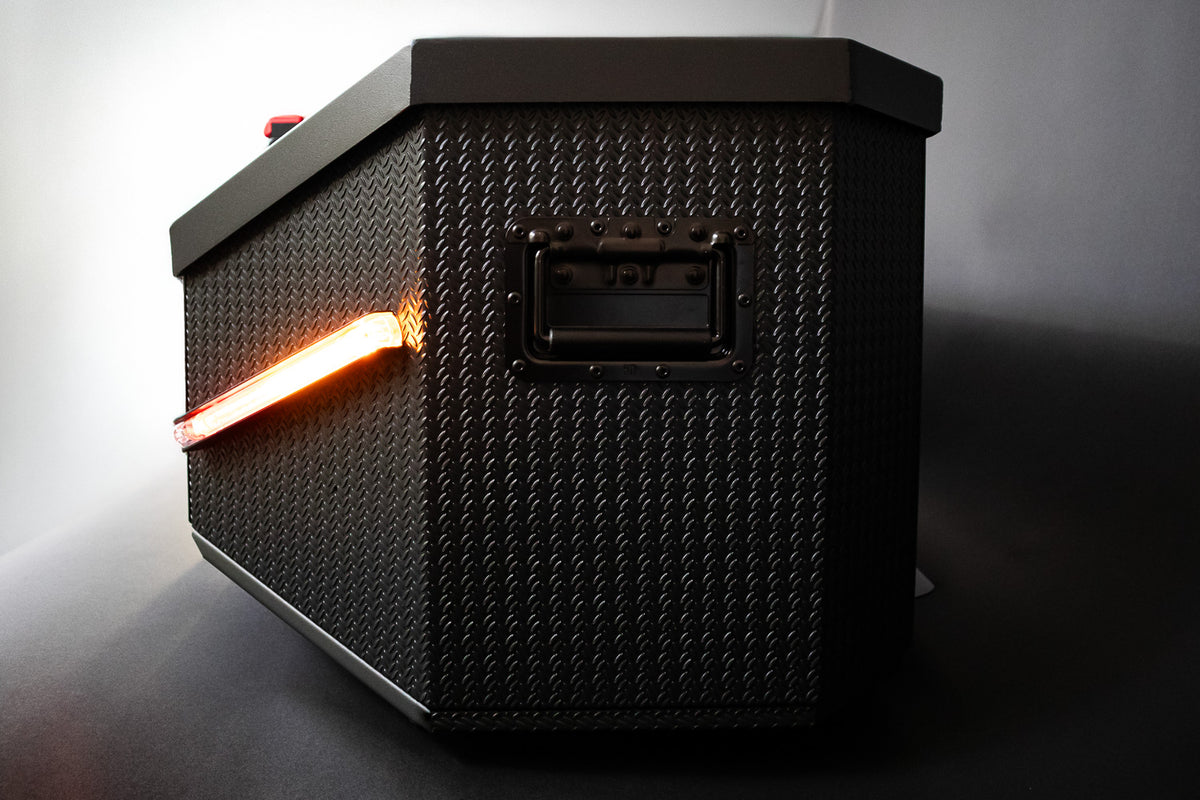 If the box covers your license plate, you can add a license plate holder to your order. IXTAbox Pro includes a light beneath the handle that also illuminates the license plate for clear visibility.