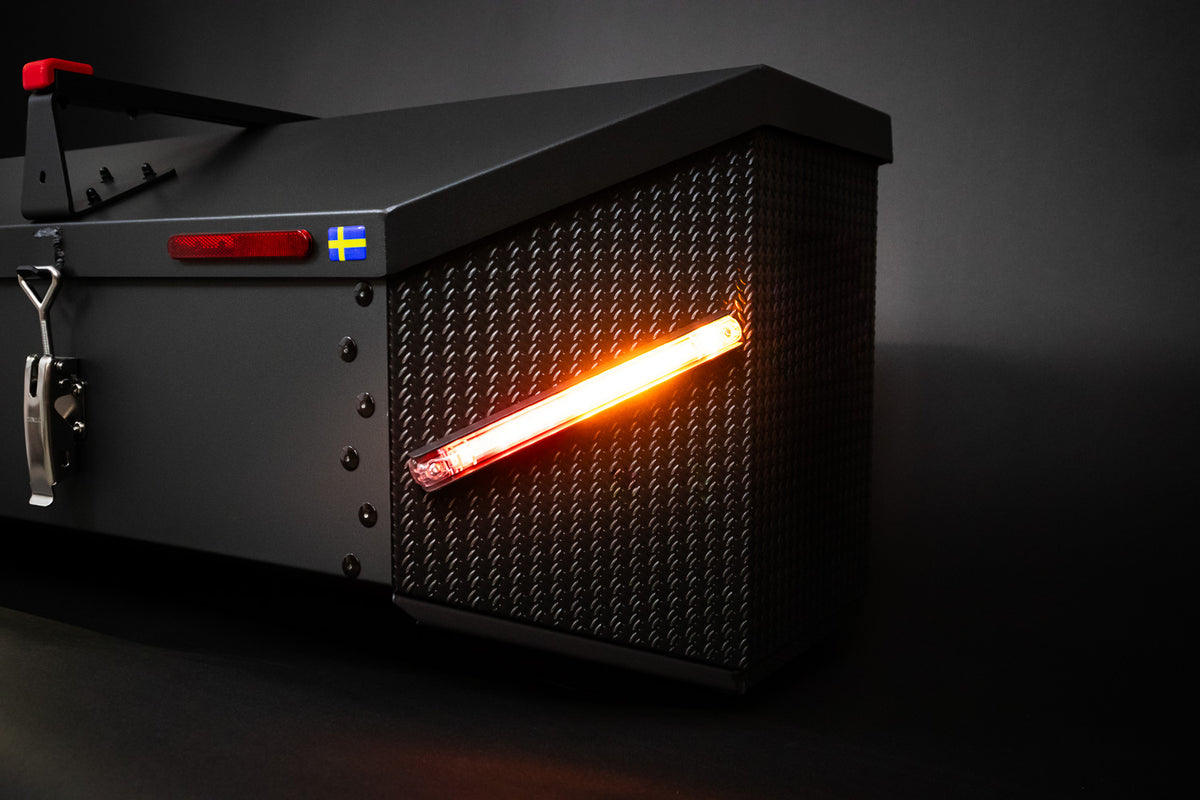 Yes. IXTAbox Pro includes integrated LED brake lights, indicators, and position lights. It connects directly to your vehicle’s electrical outlet.